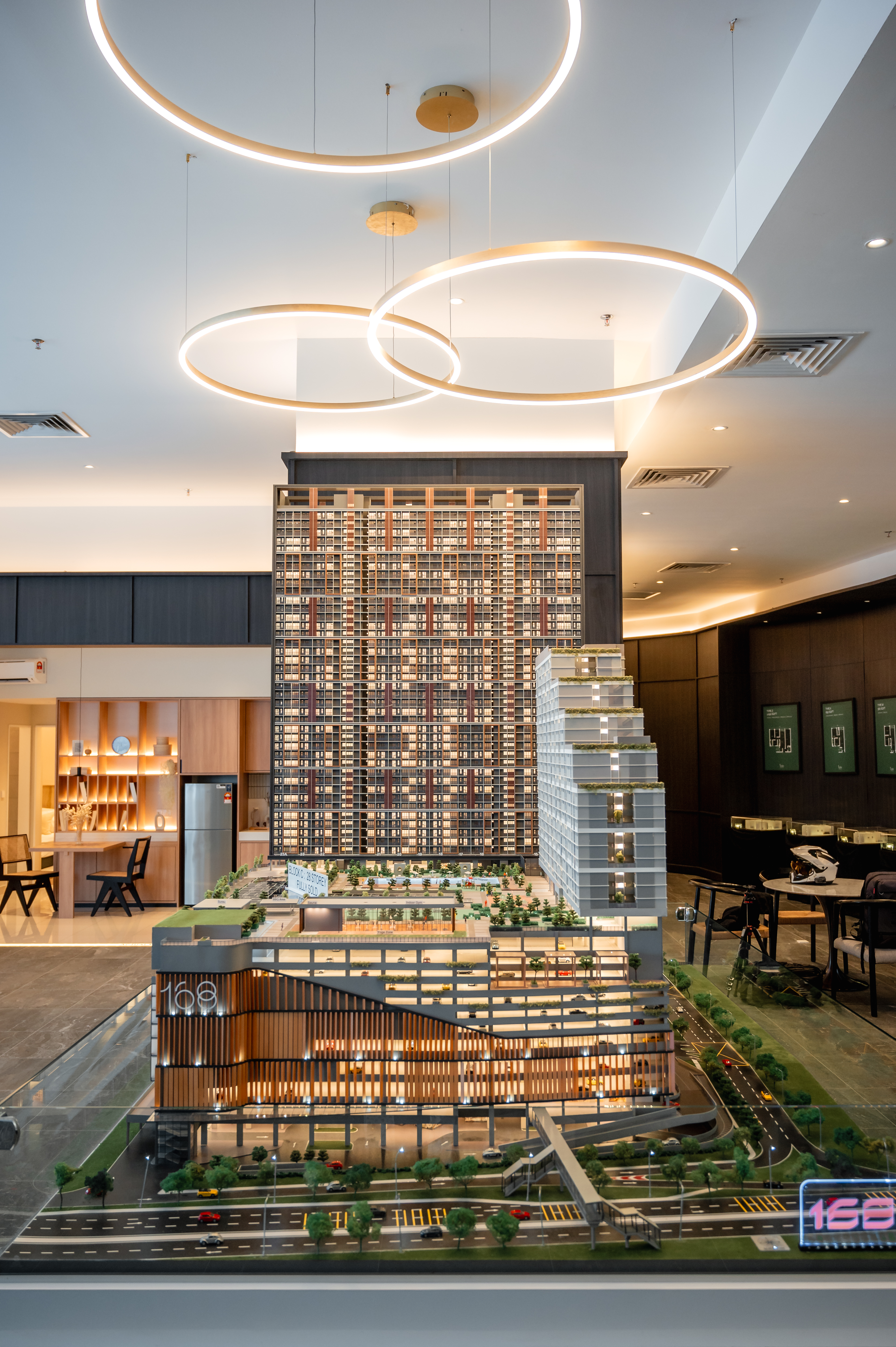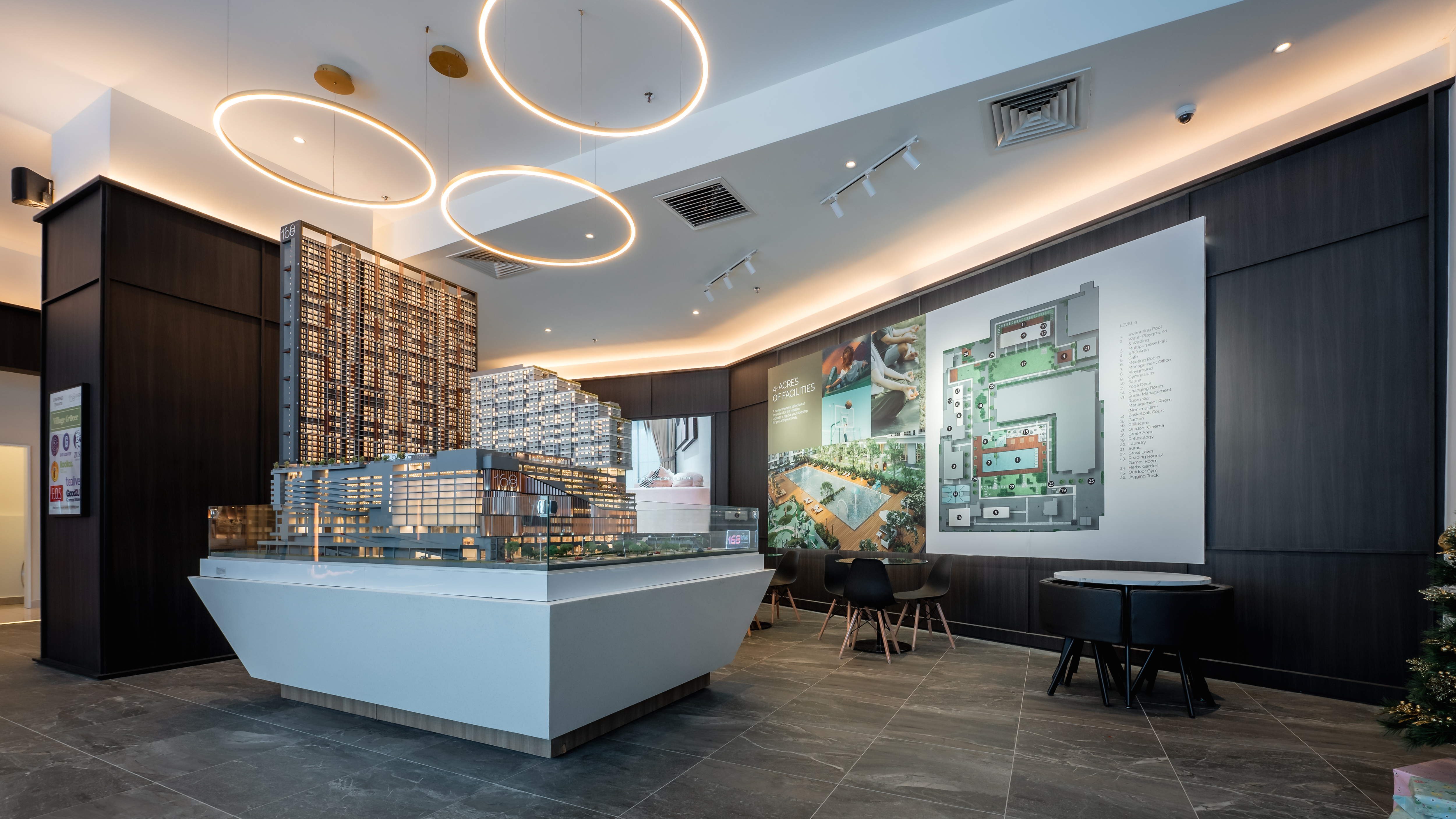 A warm and welcoming space for 168 Park Selayang property viewing. Darker tone is selected to create contrast between gallery area and show units.