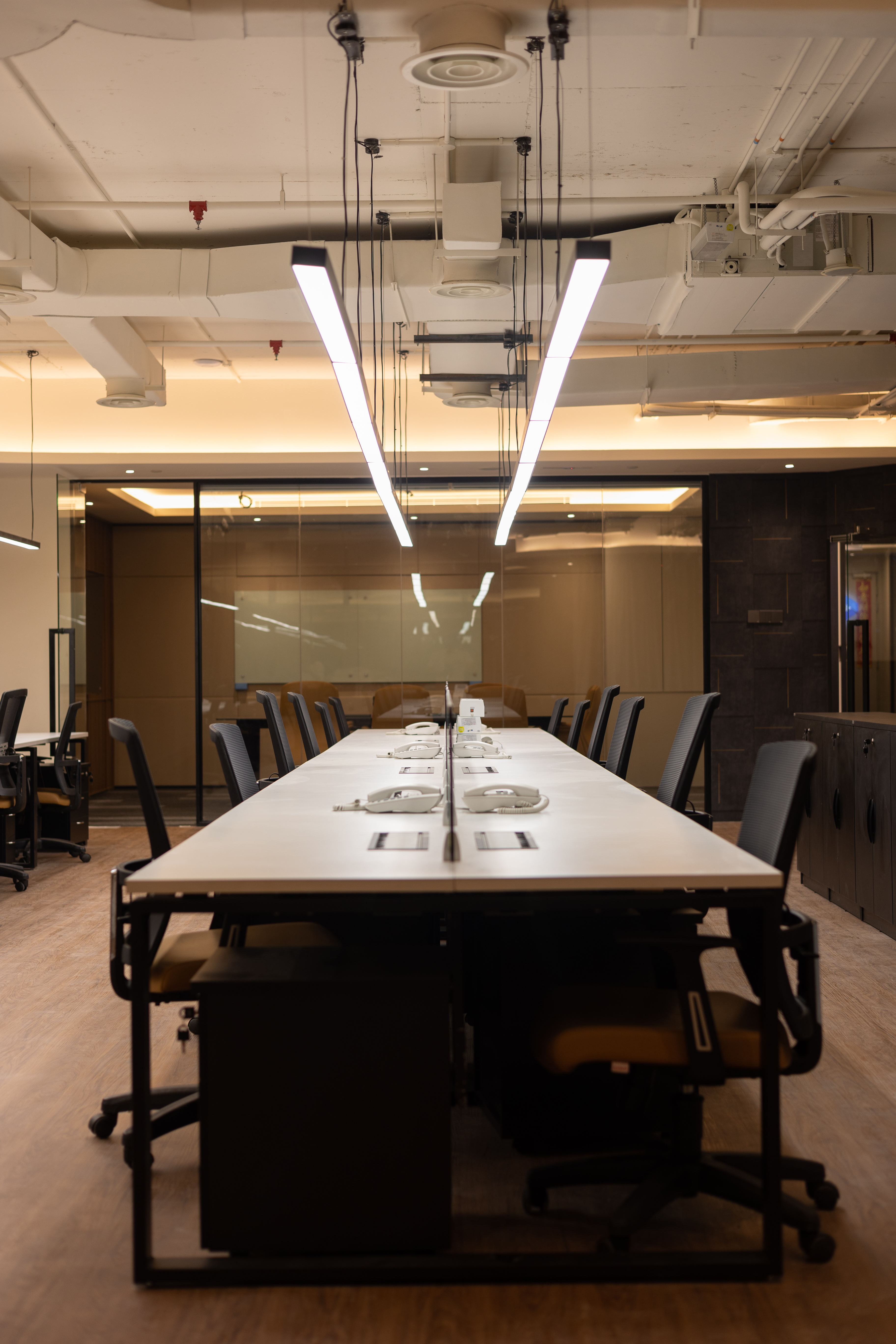 Design with clean and minimalist lines with rich Walnut accents to create a warm and inviting atmosphere. The contrast between the natural warmth of the wood and neutral tones in the walls and lighting adds sophistication and balance to the space.