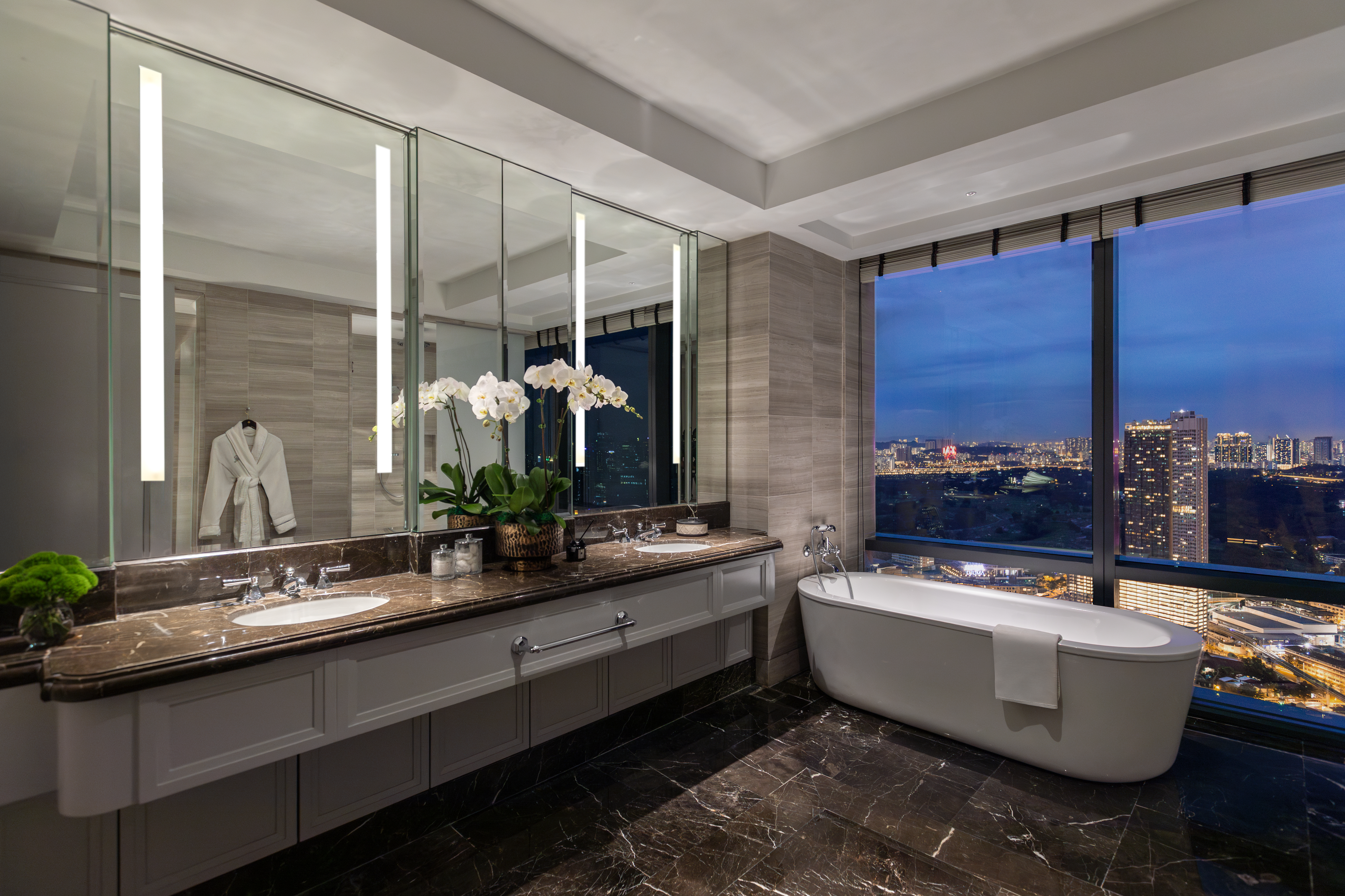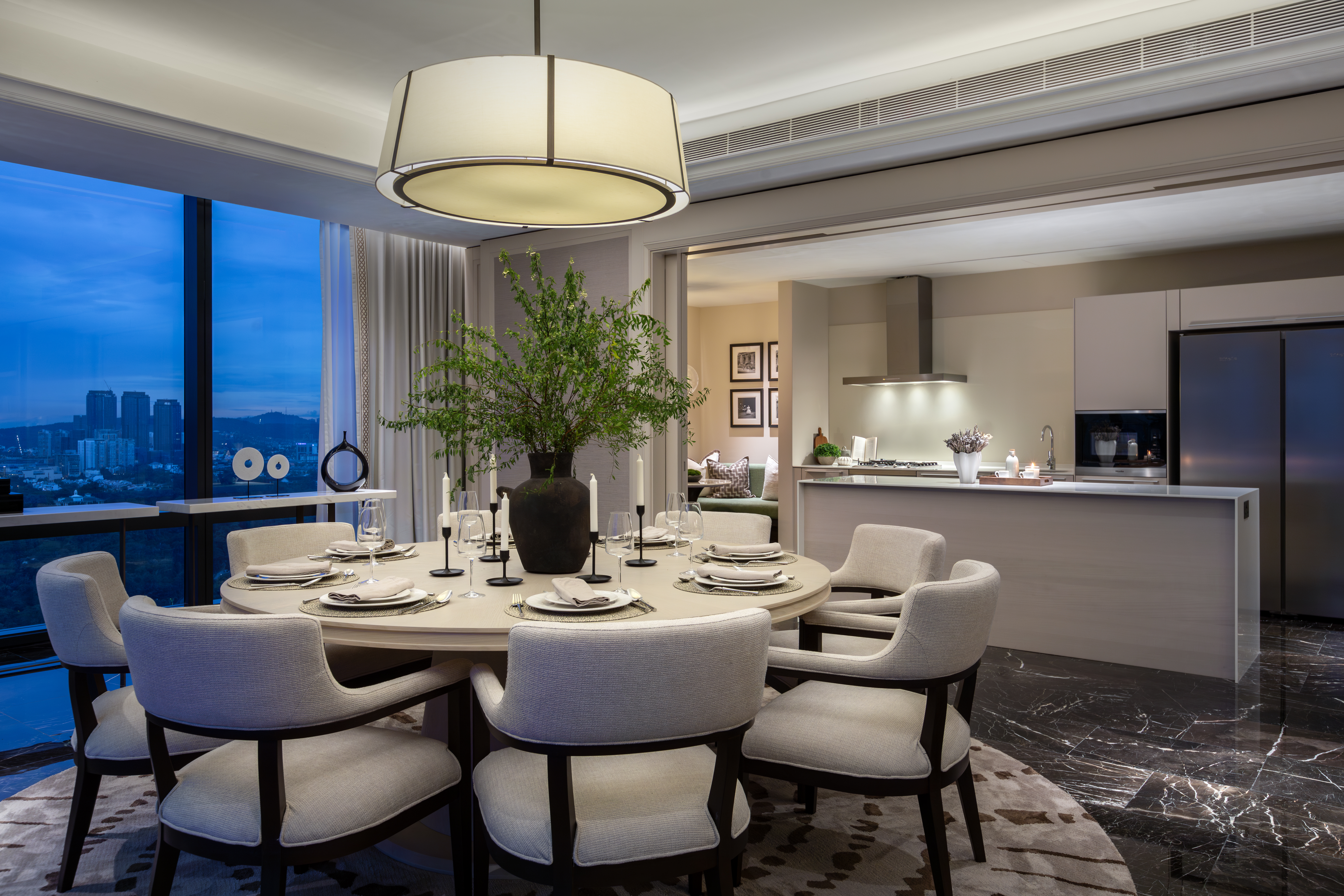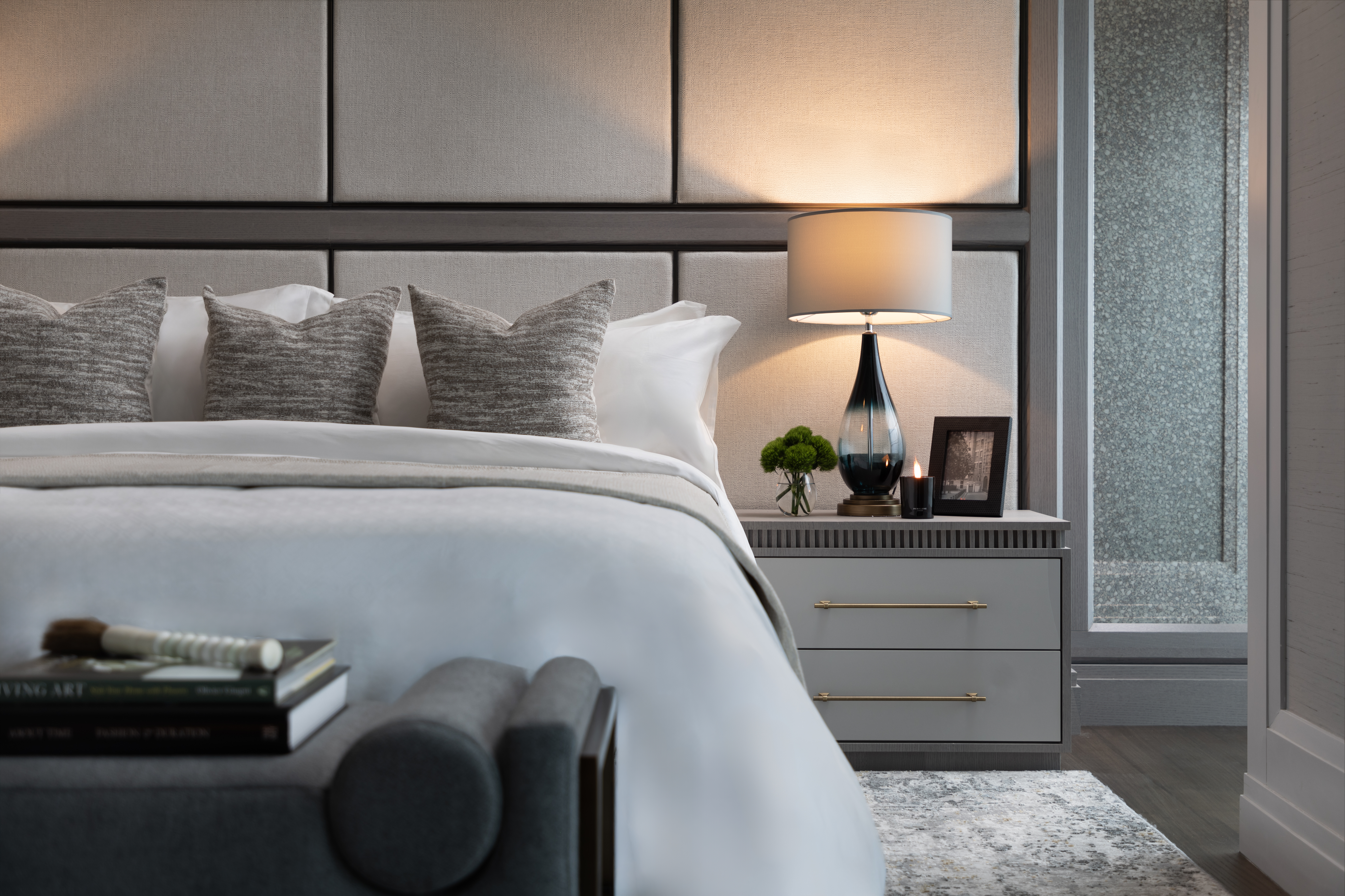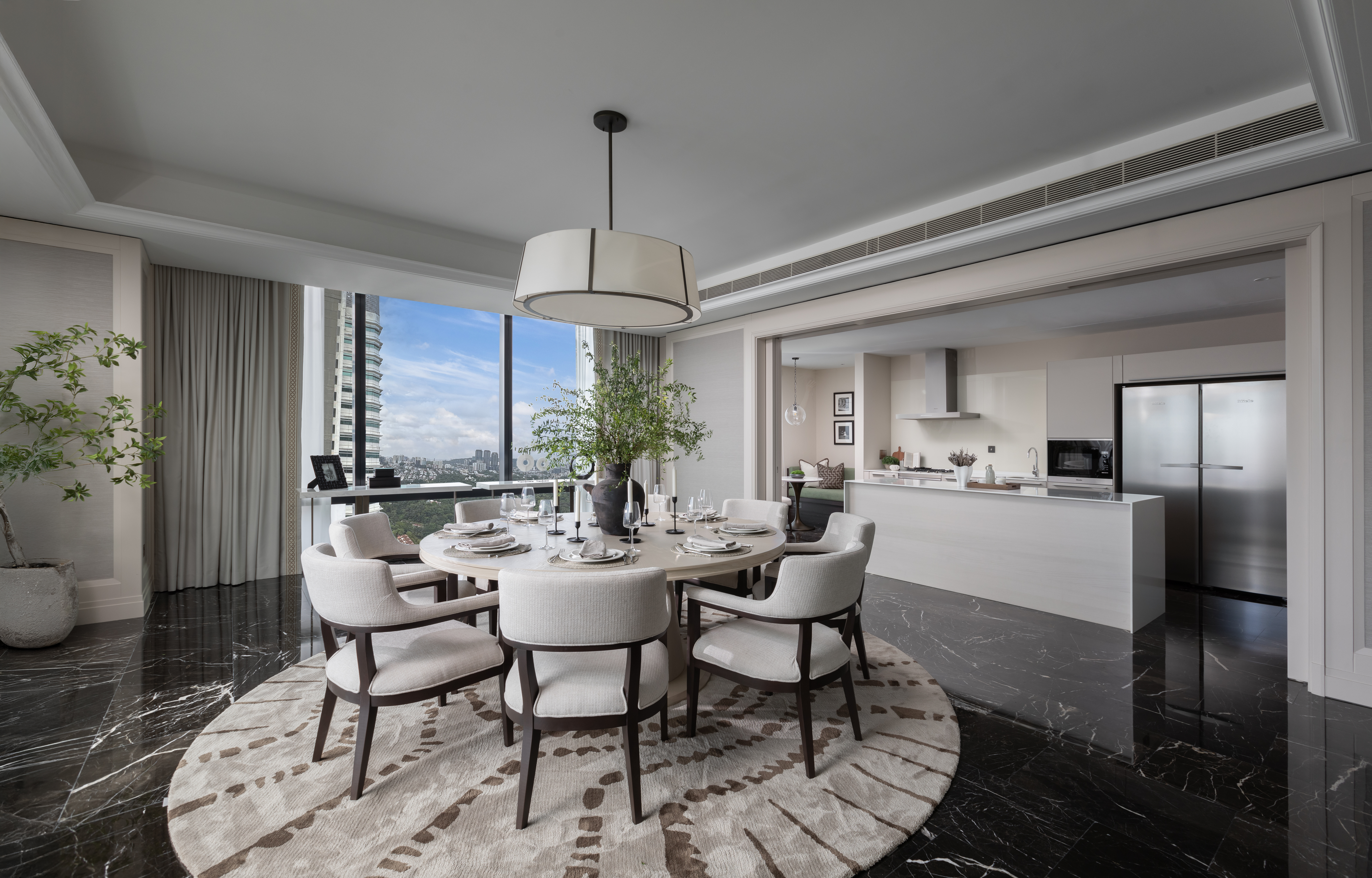 The custom wallpapers serve as statement pieces, enhancing the atmosphere with tailored patterns and textures, while the carefully selected furniture pieces complement and enhance the overall design. The result is a harmonious environment where every detail is crafted to offer both beauty and practicality, creating an exclusive and refined living experience.