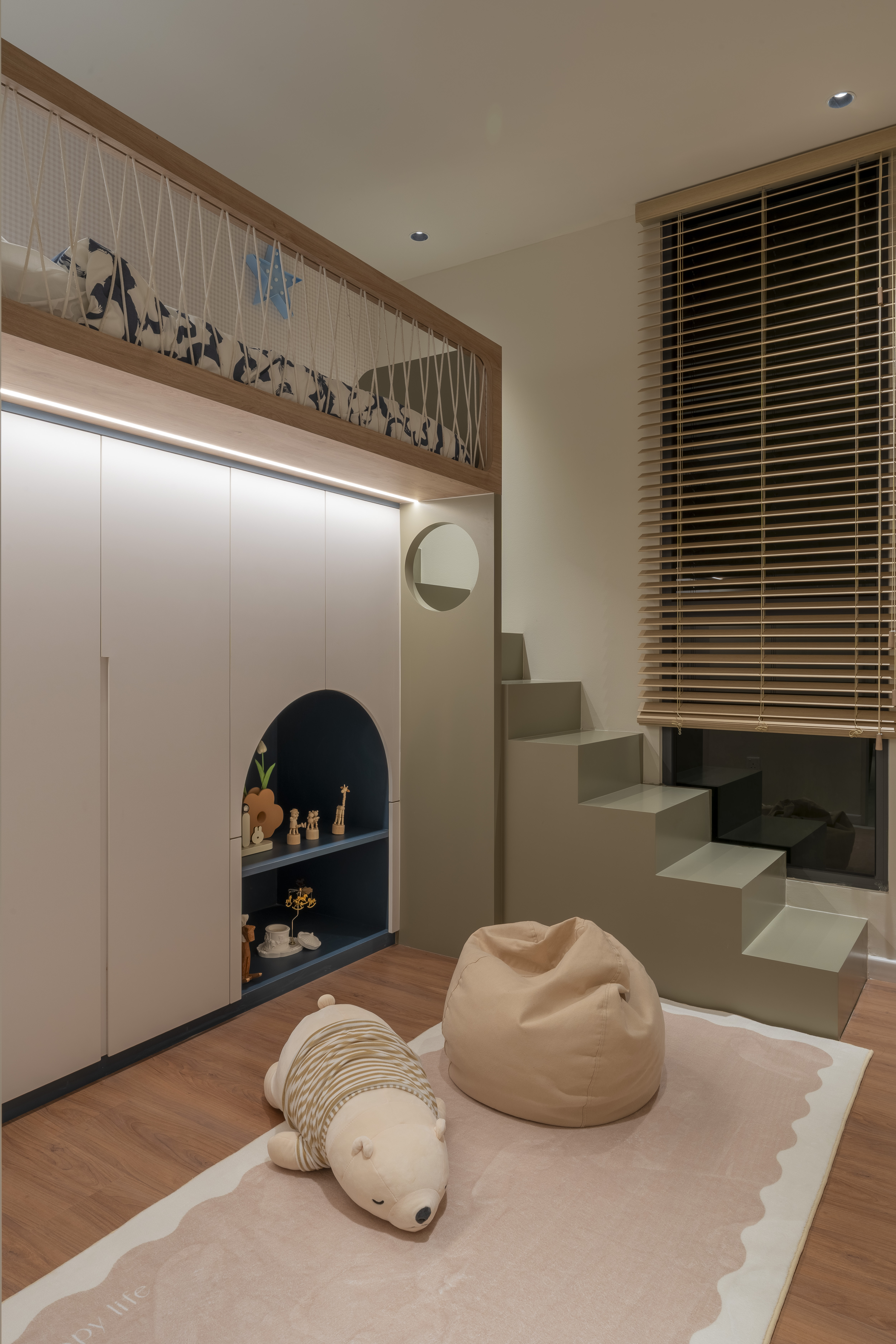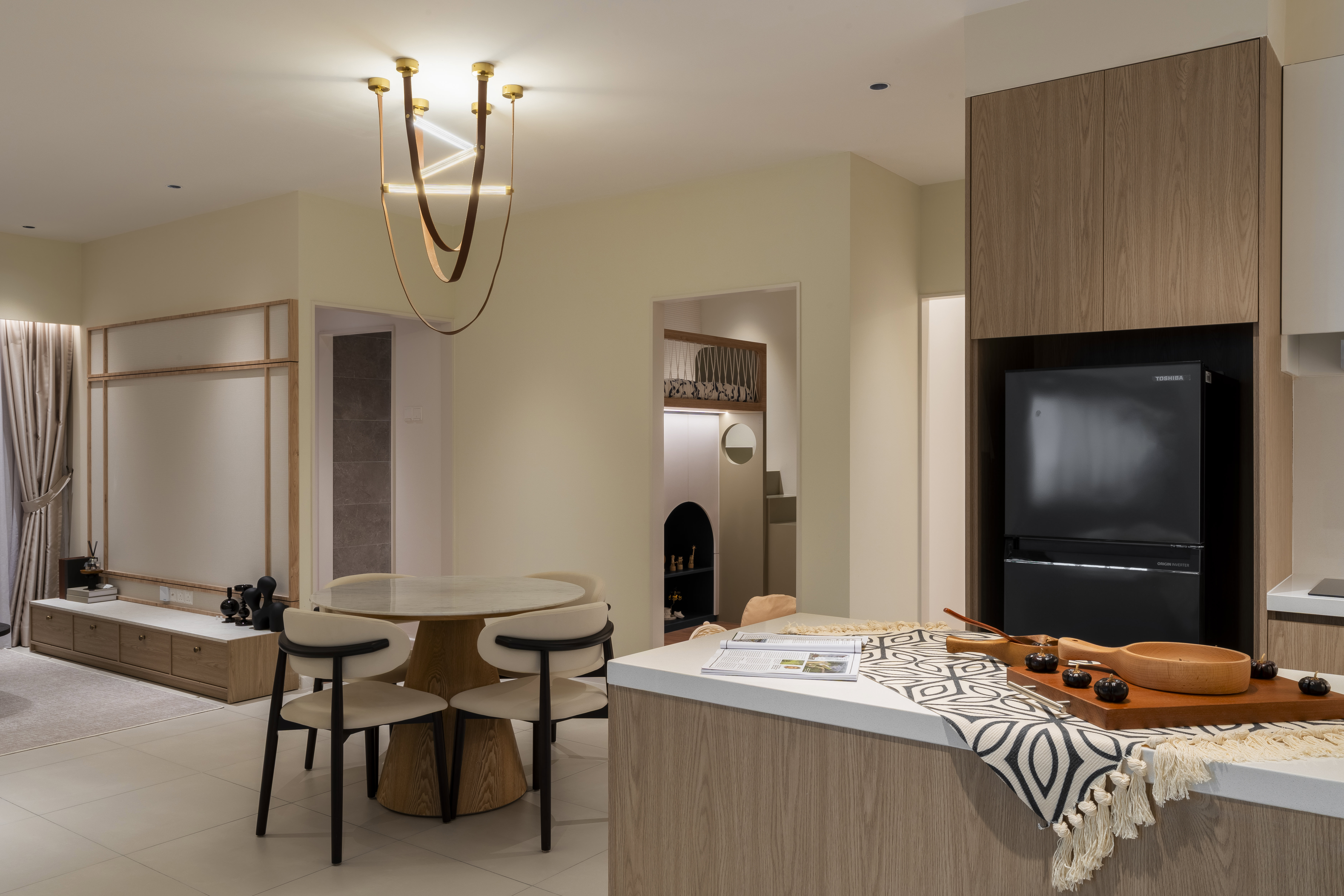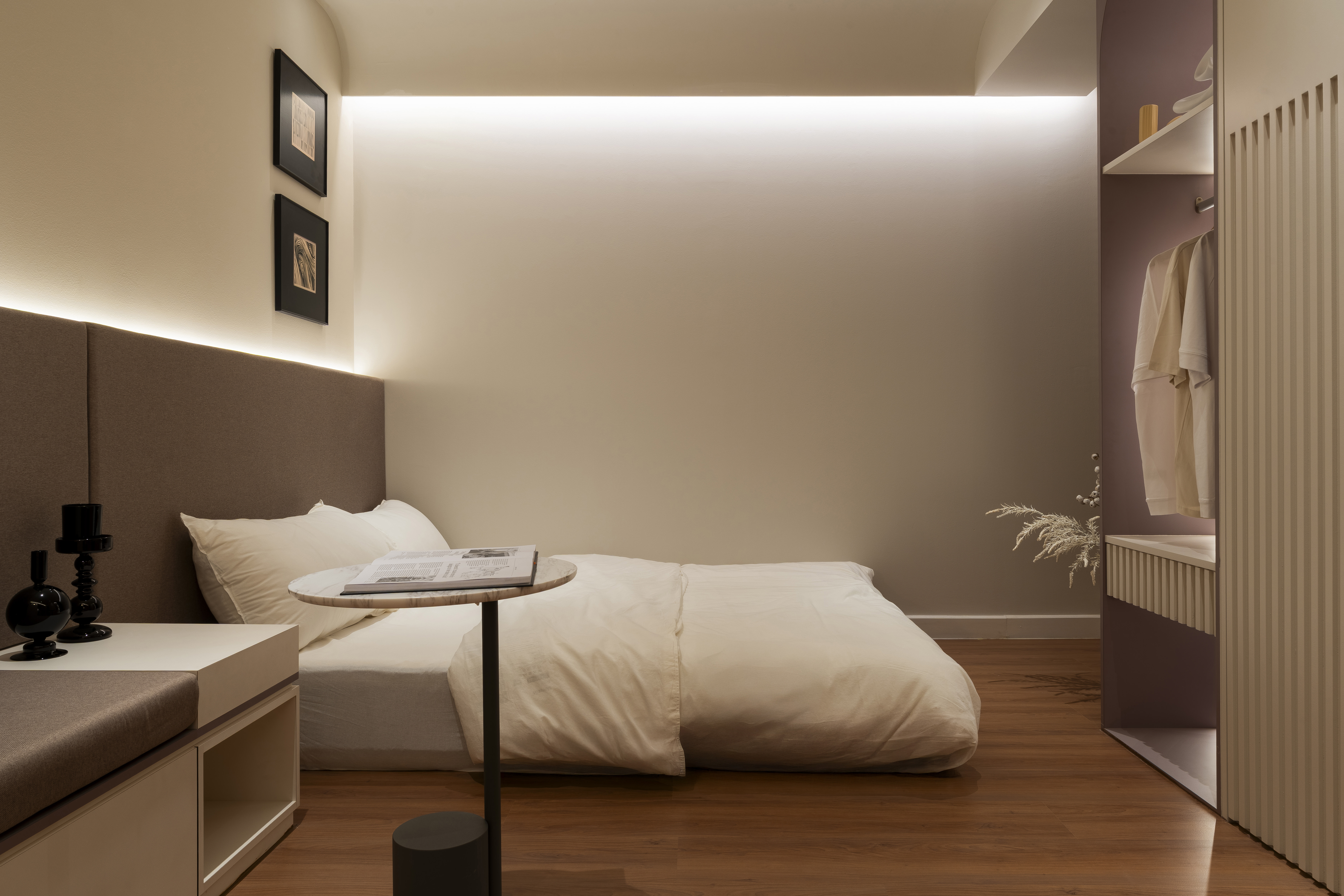 A warm and serene interior where soft neutrals and gentle lighting create an inviting sense of calm and comfort.